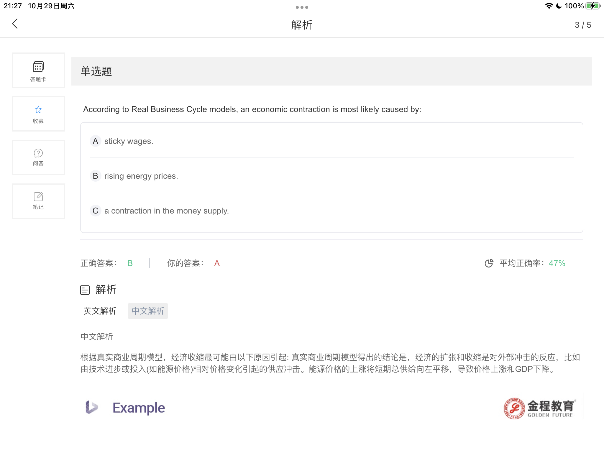 真实经济周期理论政府政策效用滞后,认为没必要政府干预,货币主义学派有相同意见,觉得政府的政策滞后因此提倡制订稳定货币增长率,衰退主因应是内需不足,但题目说是AS上的能源价格上涨,为何不选AD上的工资