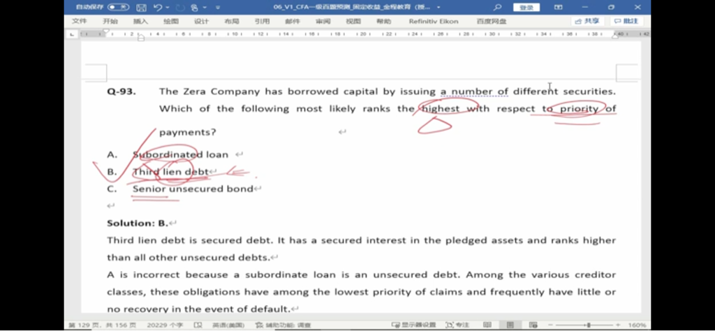 如果C选项是"senior secured bond " 对比B选项,谁更优先呢?