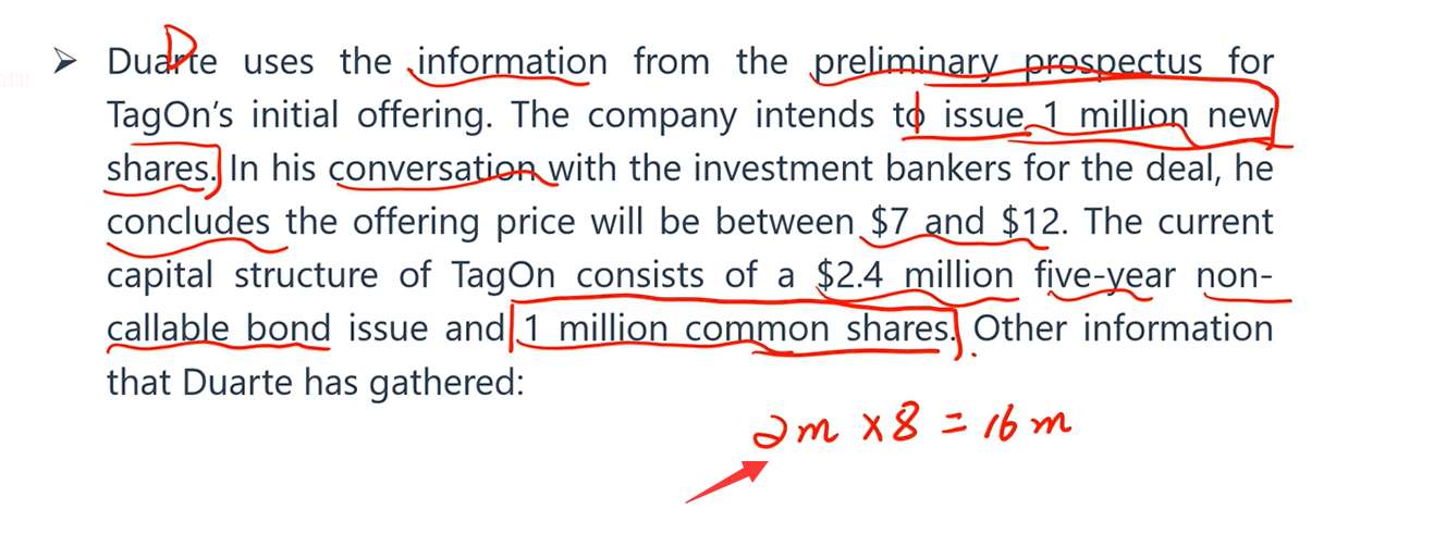这里说公司发行了2百万的股票,我读了题目,哪里说了发行了2百万的股票?