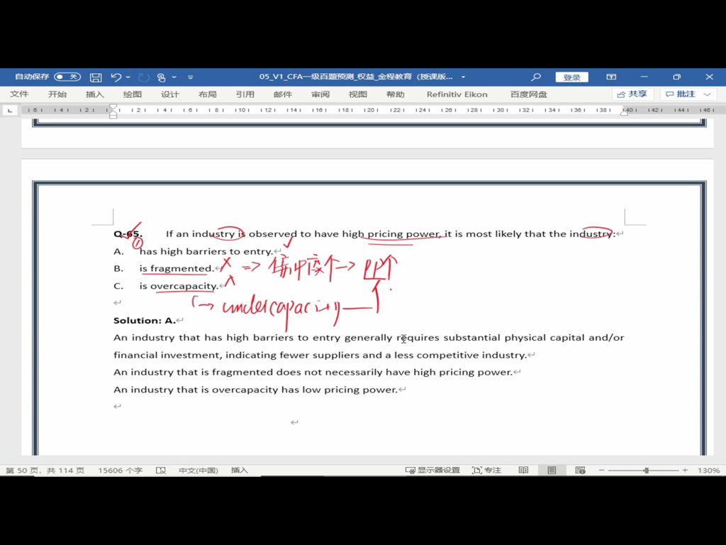 老师 C可以解释一下吗?为什么overcapacity 定价能力弱呢