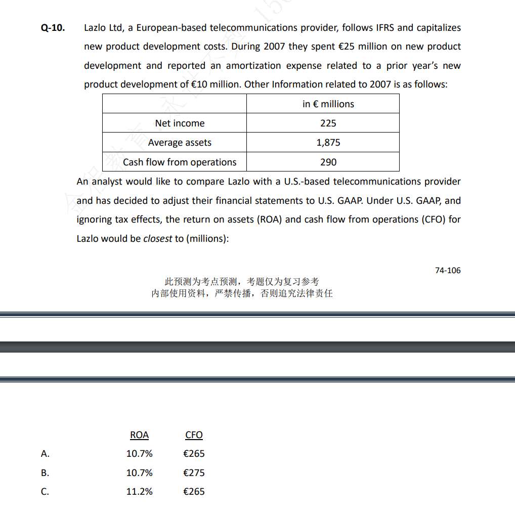 老师,为什么都不需要考虑摊销费用10million的情况,从资本化到费用化,在算ROA的asset时候不应该把10加回来吗?