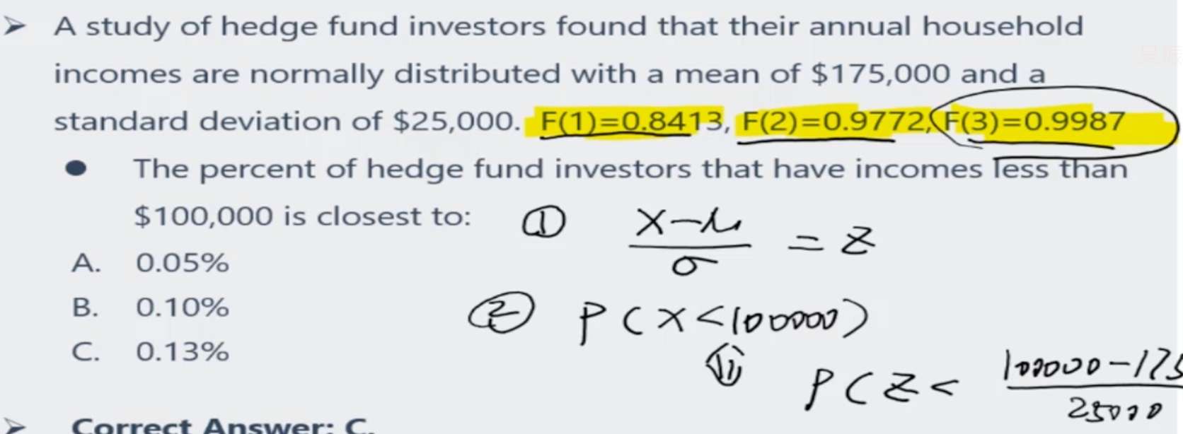 【u-2.58标准差,u+2.58标准差】的概率是百分之99,那么置信区间外的范围就是百分之0.1,那我估计一下【u-3标准差,u+3标准差】大概比百分之99要大,那么置信区间之外的概率肯定小于百分之0.1,那么置信区间外一侧的概率,不应该小于百分之0.05吗?但是和给的答案百分之0.13是不匹配的啊。
