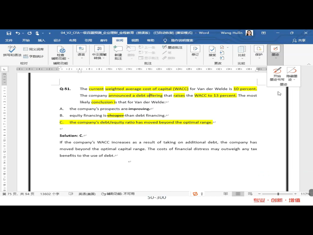 包含CFA一级传统在线课程、通关课程及试题相关提问答疑;