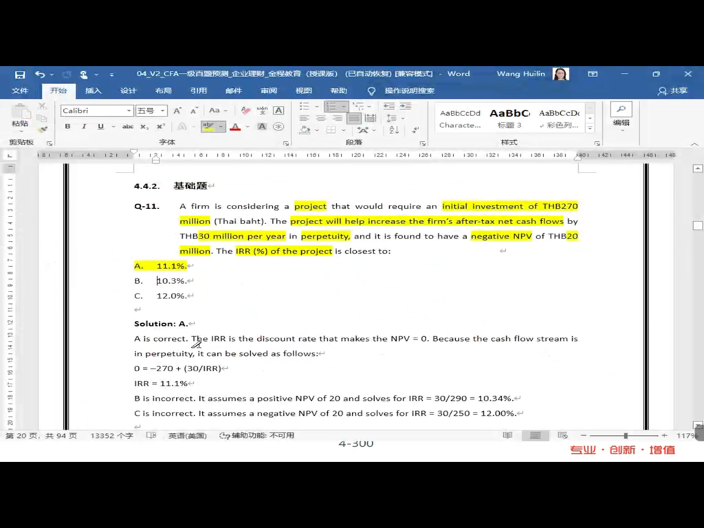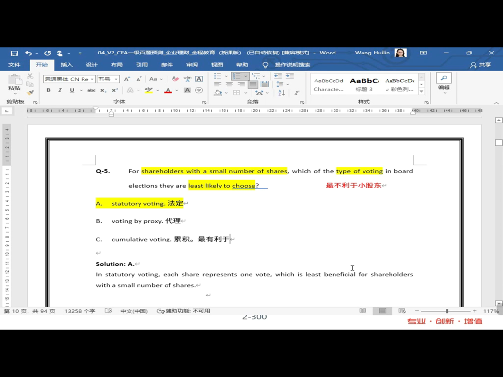 包含CFA一级传统在线课程、通关课程及试题相关提问答疑;
