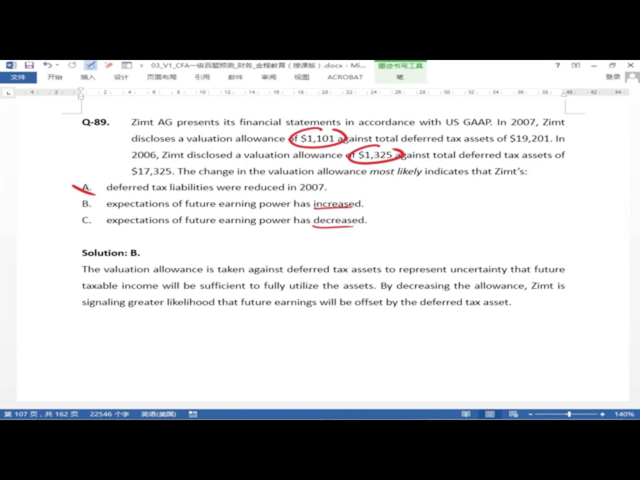 题目中同时给了valuation allowance 和 递延所得税资产两个条件,视频中用的是条件1,做题的时候如果只用递延所得税资产那个条件是正确的吗?