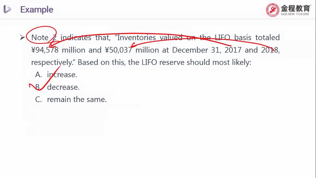 请问老师,LIFO Reserve是FIFO下的存货减去LIFO下的,这题LIFO下的存货在下降的话LIFO reserve不应该是上升吗?