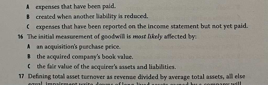 老师,可以讲一下书后题第16题吗?goodwill相关的内容课程中并没有提到诶,但是书后题却考到了,可以说一下这部分具体在原版书哪里吗?