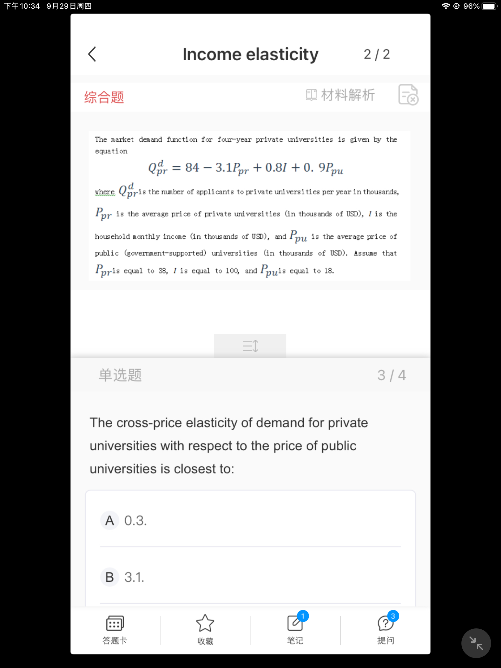交叉价格弹性的答案,我按照公式计算出来的结果是0.2596,答案为啥是0.3。我的解题方法跟题目一样