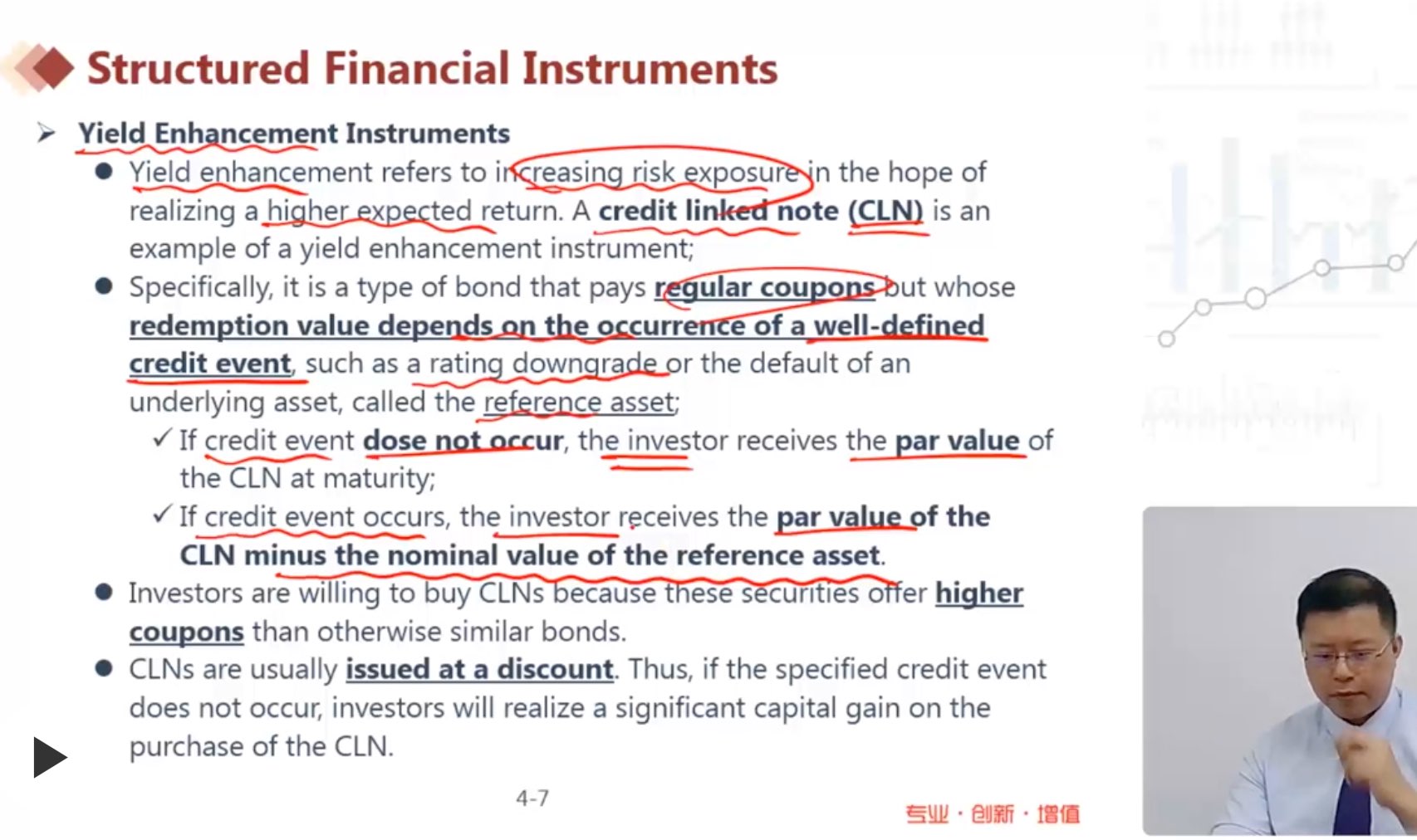 请问老师,信用事件未发生时,Investor receives the par value of CLN minus the nominal value of the reference asset这是啥意思呢?是前面举的例子中的A么?