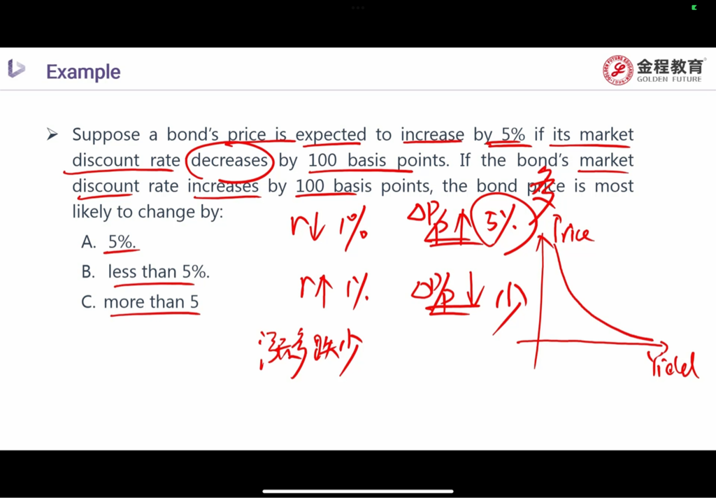 - 对于老师讲的这部分,1. 我理解FRA的Payoff始终等于利率期货的Payoff部分进行折现(除以1个大于1的数),也就是说,FRA的Payoff的变动幅度 应该 始终小于利率期货的变动幅度。2. 至于是涨多跌少,还是涨少跌多,其实MRR在分母上,可以根据1/x的曲线特点来理解,无非就是MRR上升时1/(1+MRR)的变动幅度 小于 MRR下降时1/(1+MRR)的变动幅度,所以如果MRR上升时,Payoff是上升的,那么就是涨少跌多,如果MRR上升时,Payoff是下降的,那就是涨多跌少。以上2点,我理解的对吗?
