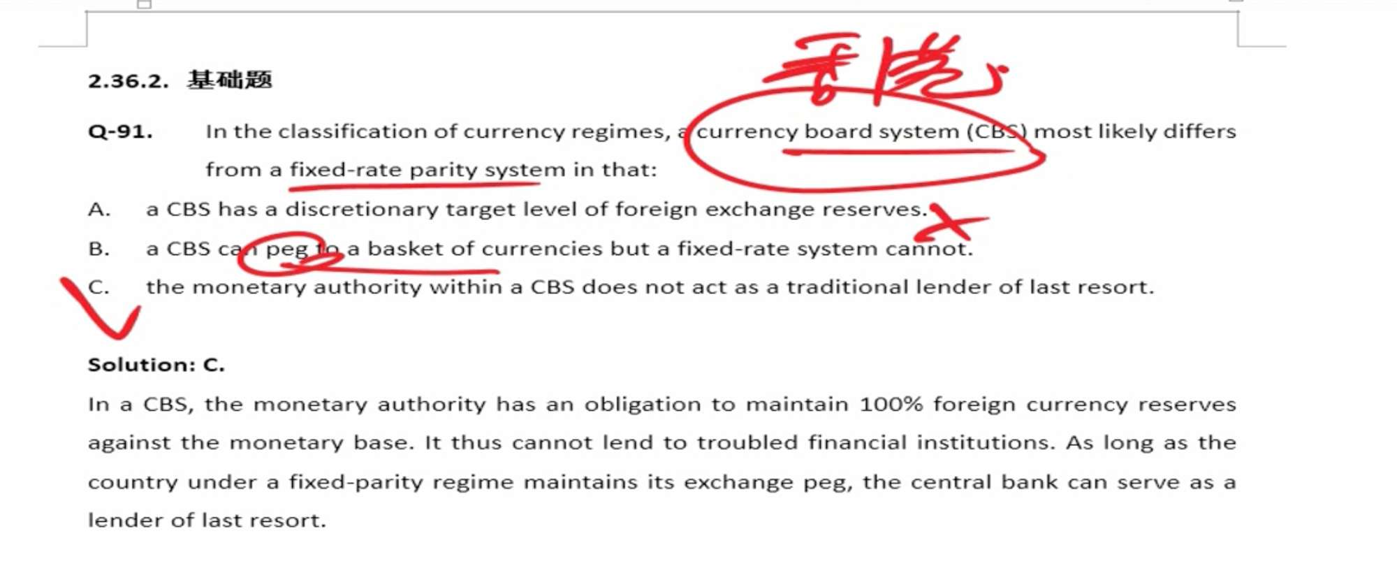B选项CBS不是peg_to_a_basket而是peg_to_a_single_currency?C选项感觉也没有提到和fix_rate_parity的区别。。