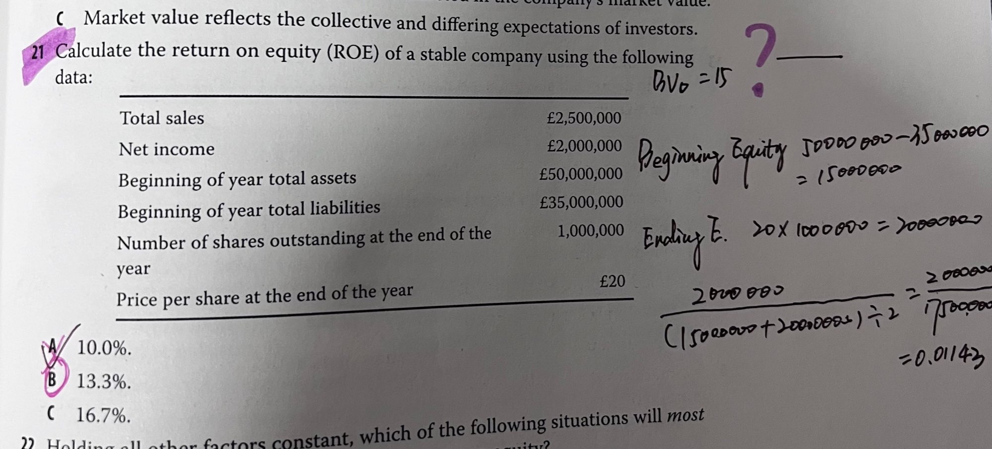 老师,请问21题是我自己想太多了嘛??我看了答案就是简单的用了BV0的值做了分母,我怎么觉得应该要算个BV1呢