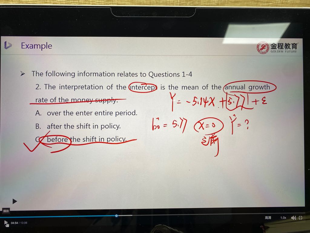 截距用来解释年化增长率的均值?题干没有写均值?线形回归也没有涉及均值啊?
