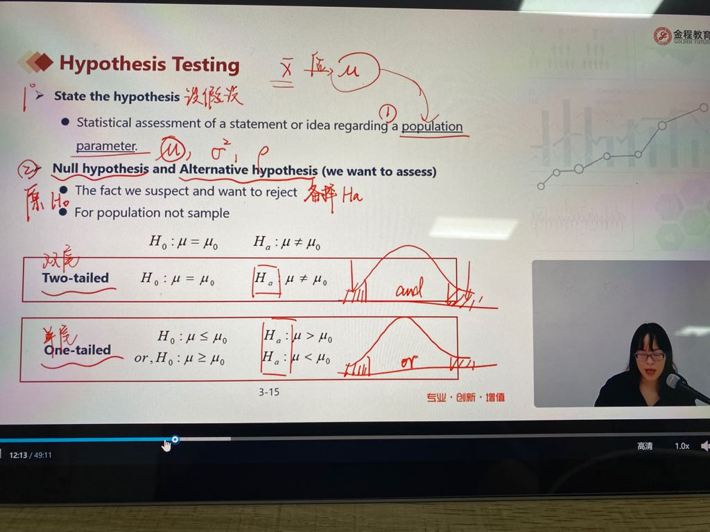 老师,The power of test 为什么是 the probability of not making a type 2 error?我以为不发生二类错误的概率就是发生一类错误的概率,一类错误的概率不是等于significant level吗?