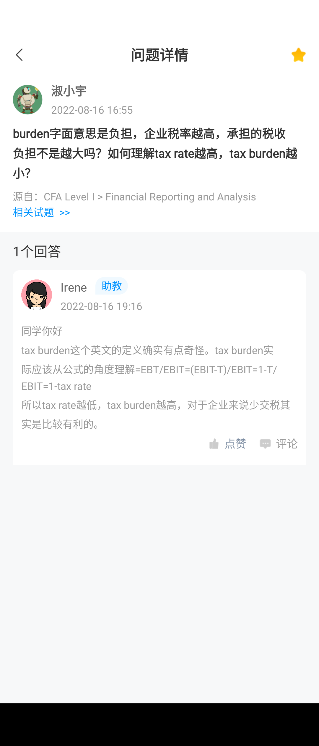 包含CFA一级传统在线课程、通关课程及试题相关提问答疑;