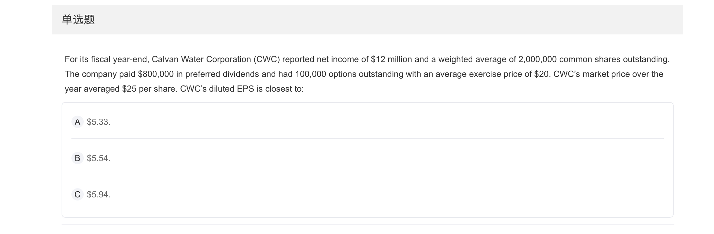 这道题在计算回购的时候。为什么是十万乘以20块除 以25块, 而不是10万乘以25除以20?谢谢。另外为 什么是回购。option的定义难道不是比如买 -个可以 在特定价格买卖的权利。所以当¥20涨到