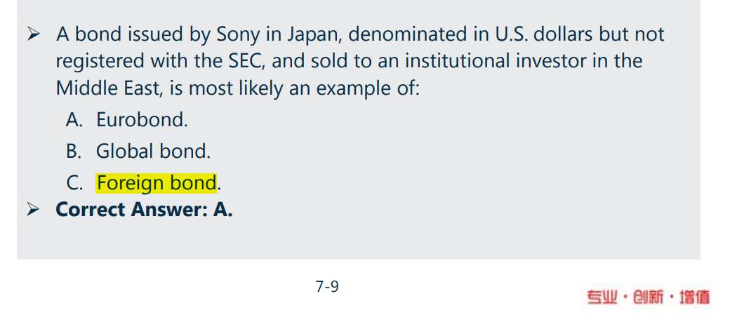 老师,这道题里,判断为foreign bond,是因为发行地和发行货币不同。此题的发行地是指日本还是指中东? 听老师的解释好像是发行地是中东,我怎么觉得是日本呢?