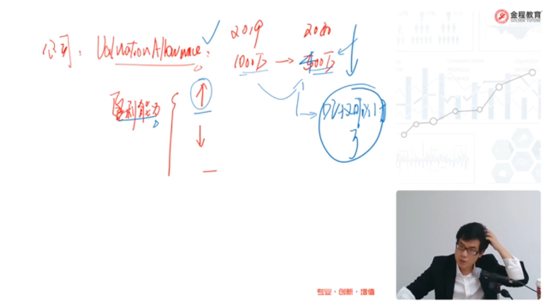 请问这里老师讲的是Valuation allowance里面的钱变少了,说明能用到账户里面的钱变多了,盈利能力上升,但是盈利能力上升可能会导致税费更多,也可能导致DTA更多,那这样备抵账户里的钱可能变多吗?