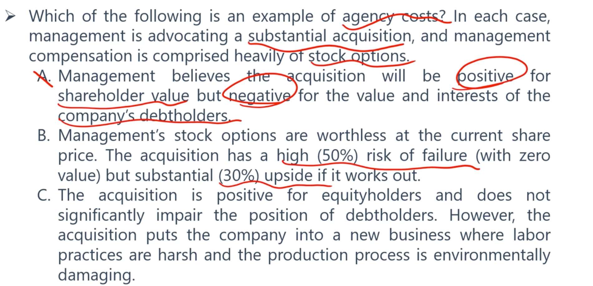 财务杠杆越高,债务持有人和股权持有人矛盾越明显还是财务杠杆越低越矛盾越明显?我的理解是越高越明显吧?因为借债借的多了,导致风险越高,债务持有人不希望这样,但是股东希望风险越高,以此来获取更高收益,是这样吗?