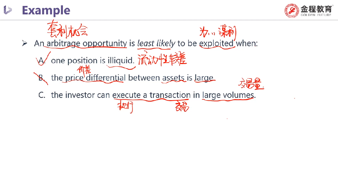 这里c说,有很大量的交易,如果有很大量的交易,就说明越趋近于一价定律。既然同样的物品在不同的市场越来越趋于统一价格,为什么还有套利机会呢