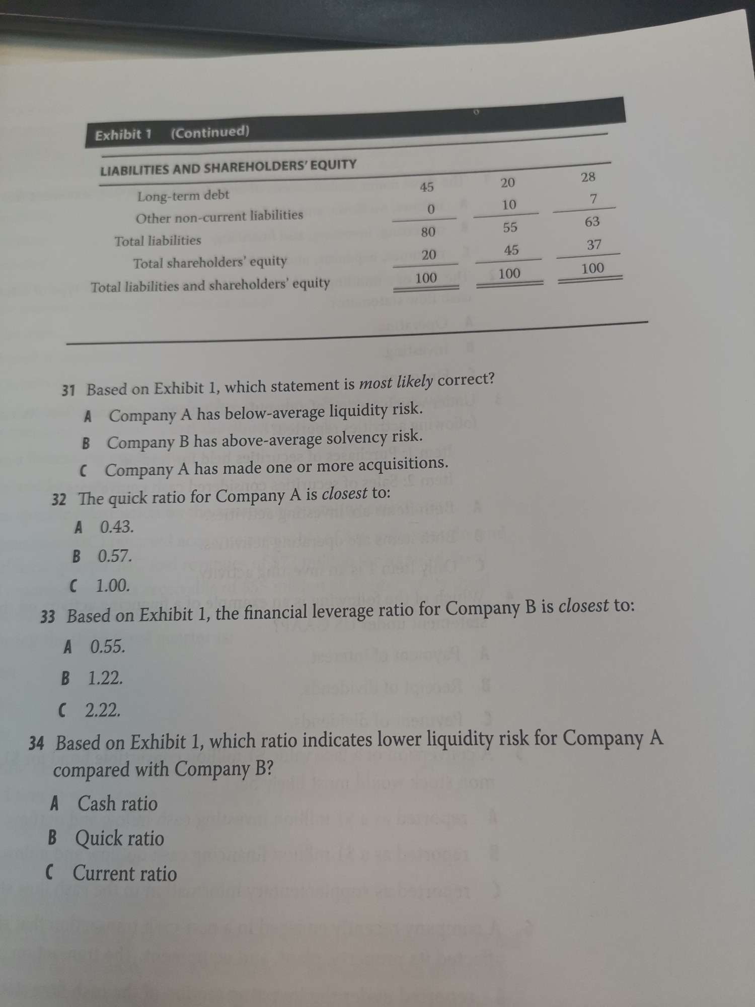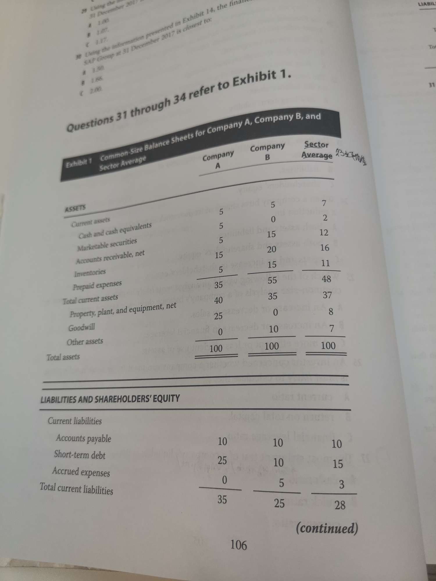 老师您好!这道题34的题干没看懂,我理解的题的表达意思是对b公司比较来说,a哪个流动比率更低些?是这个意思吗?但是a选择项A公司比B公司高呀 谢谢!