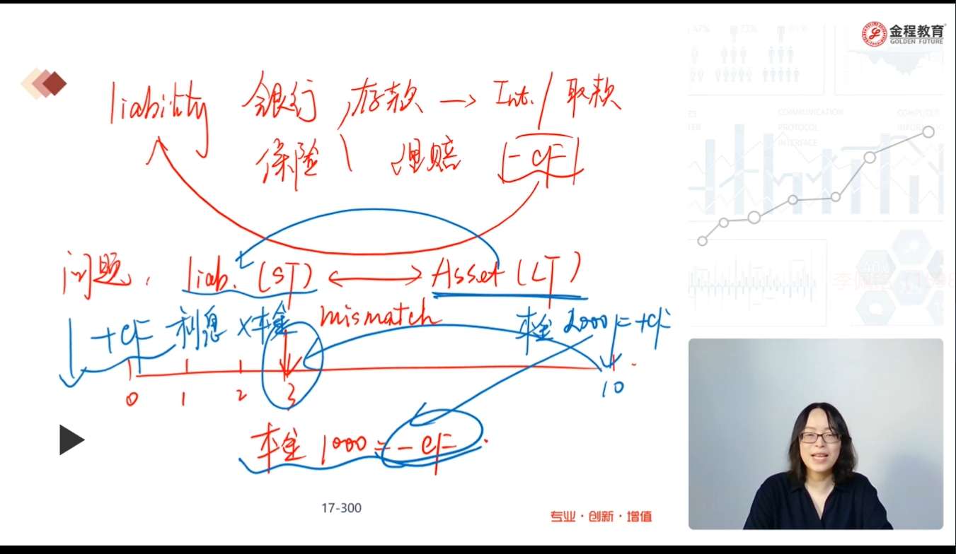 请问这里提到了负债要比资产的本金提前7年去还,没听懂,通常存银行肯定是有本金的啊,为何10年才流入,麻烦再讲一下