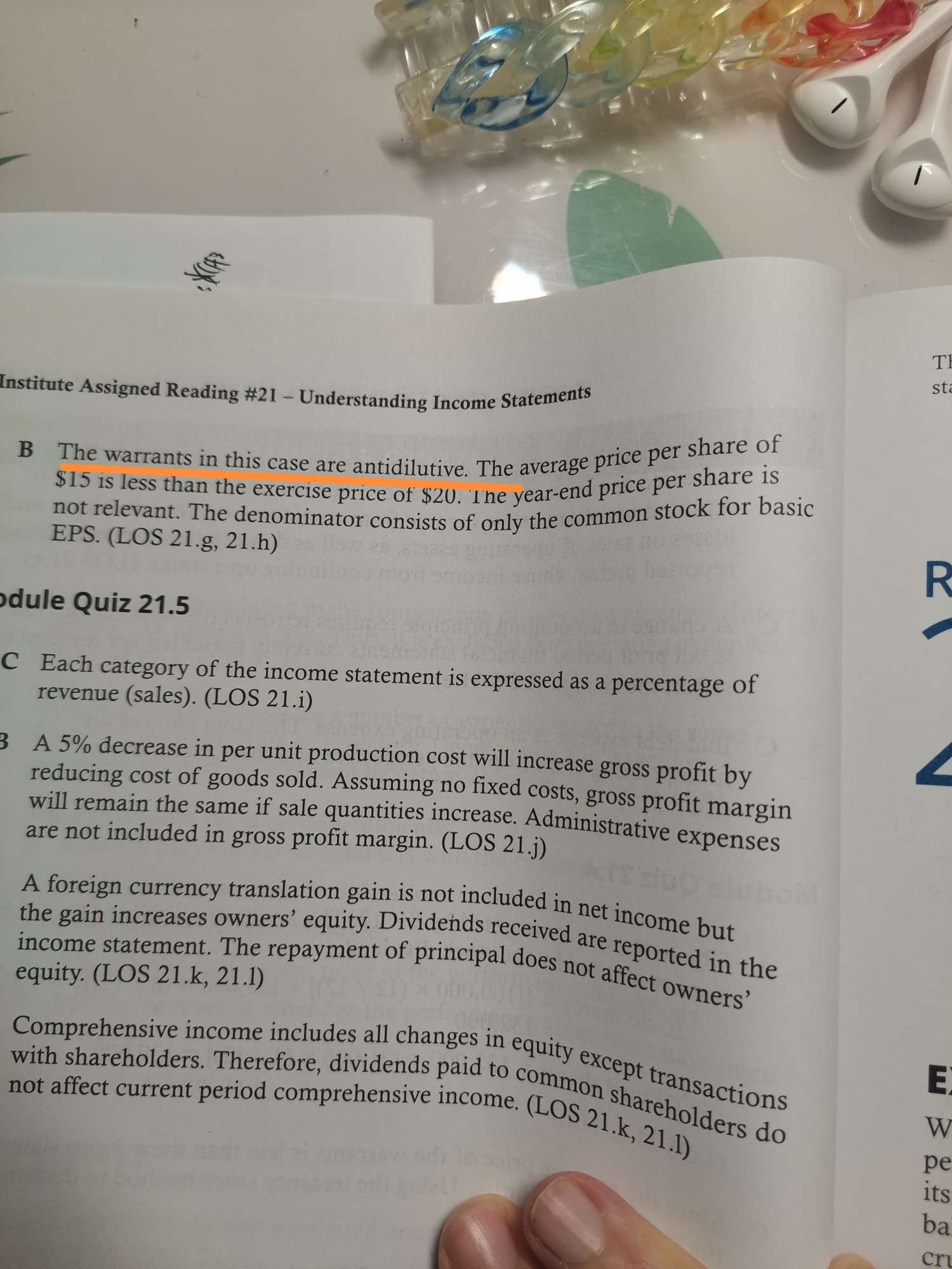 老师您好!这道题没看懂,不是只要是warrant行权,不都是稀释作用吗?谢谢
