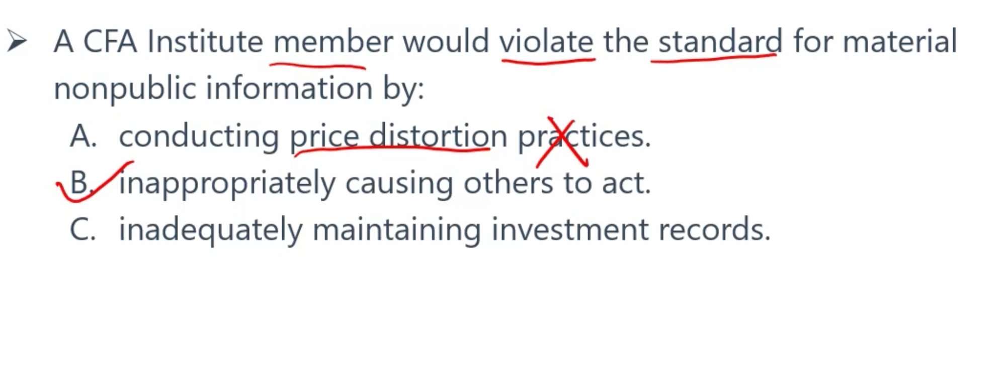为什么A不对?利用非公开重大信息完全可以操纵市场,也就是说的B,act improperly
