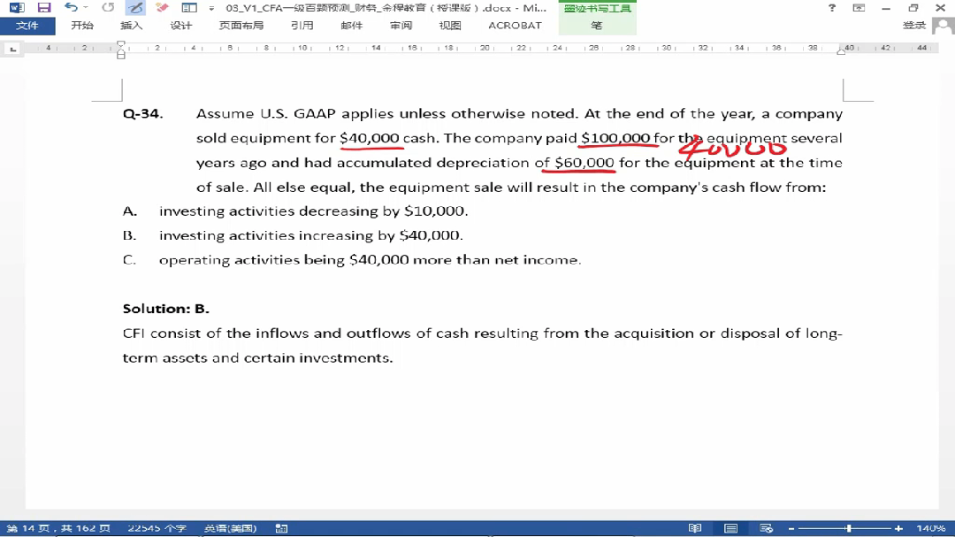 34题,不应该是这个公式吗,所以CFI应该等于0啊