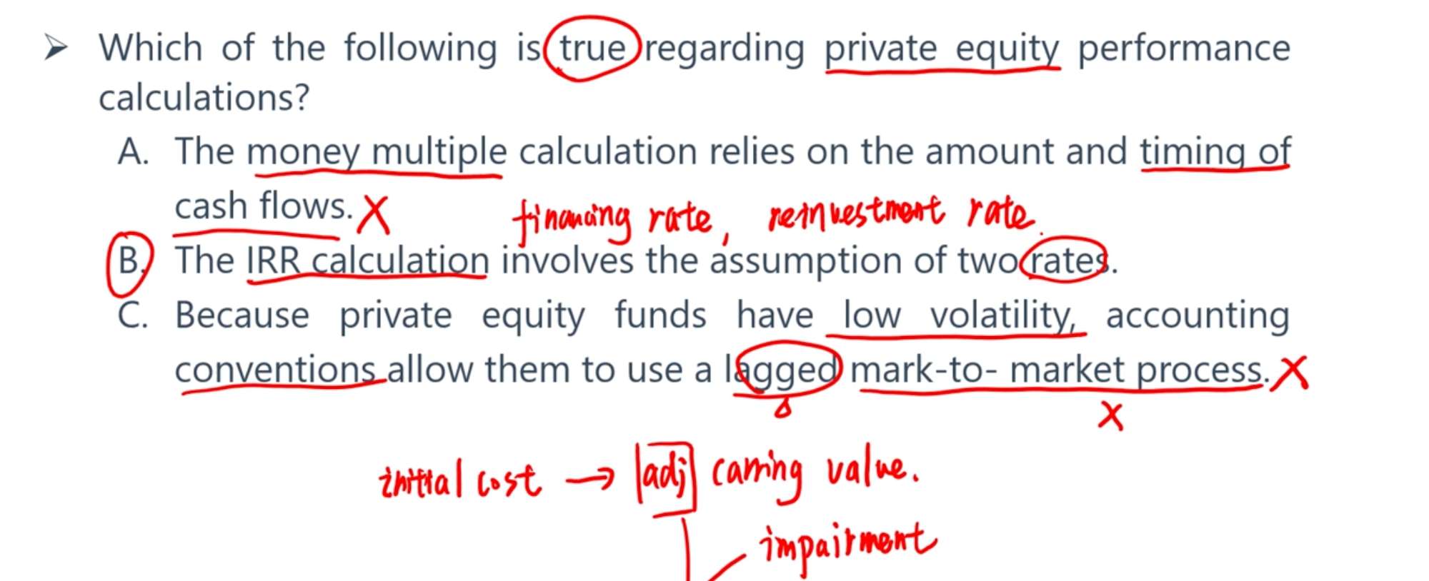 C难道不是对应的第二张截图的的第二个点吗,A选项money_multiple公式讲义有吗?B选项两个rate讲义上有吗?