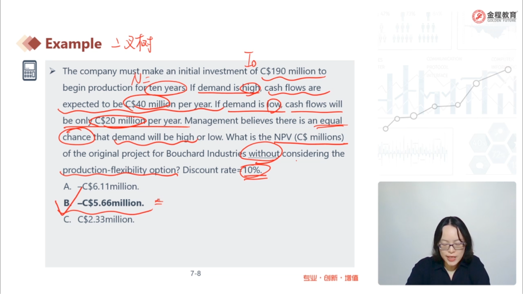 二叉树法算出来的期望现金流不是考虑了demand低或高的情况吗?为什么可以用于计算NPV呢?题目问的是不考虑production- flexibility下的NPV