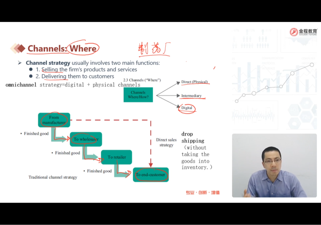 老师,这图旁边为啥写的是直销?这不是代销吗?先卖给wholesaler,再往下一级一级销售