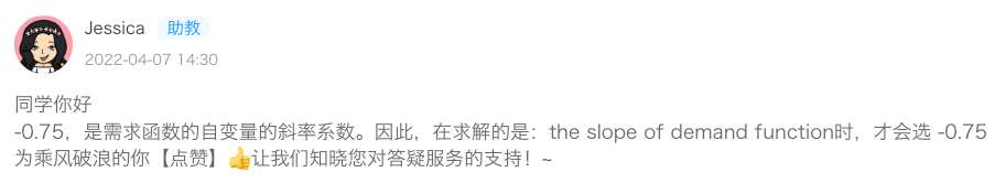 第1题,所以“demand Curve”就是-1.33、“demand Function”就是-0.75是吗?