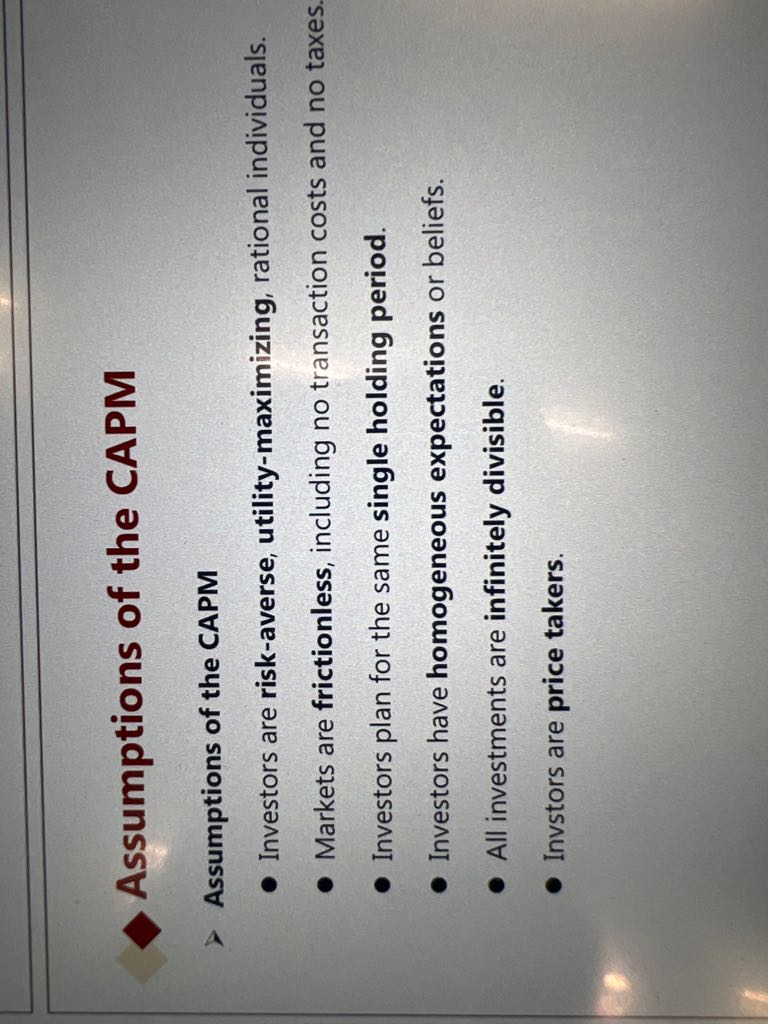 老师,这题的B怎么理解呢?对应ppt里的6条里的哪一条?其次ppt里的倒数第二条是什么意思,我指放在capm里该怎么理解?