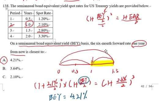 老师这道题还是没有理解,为什么2.1%/2这里使平方啊,并且为什么不使用1.2%这个spot rate,谢谢