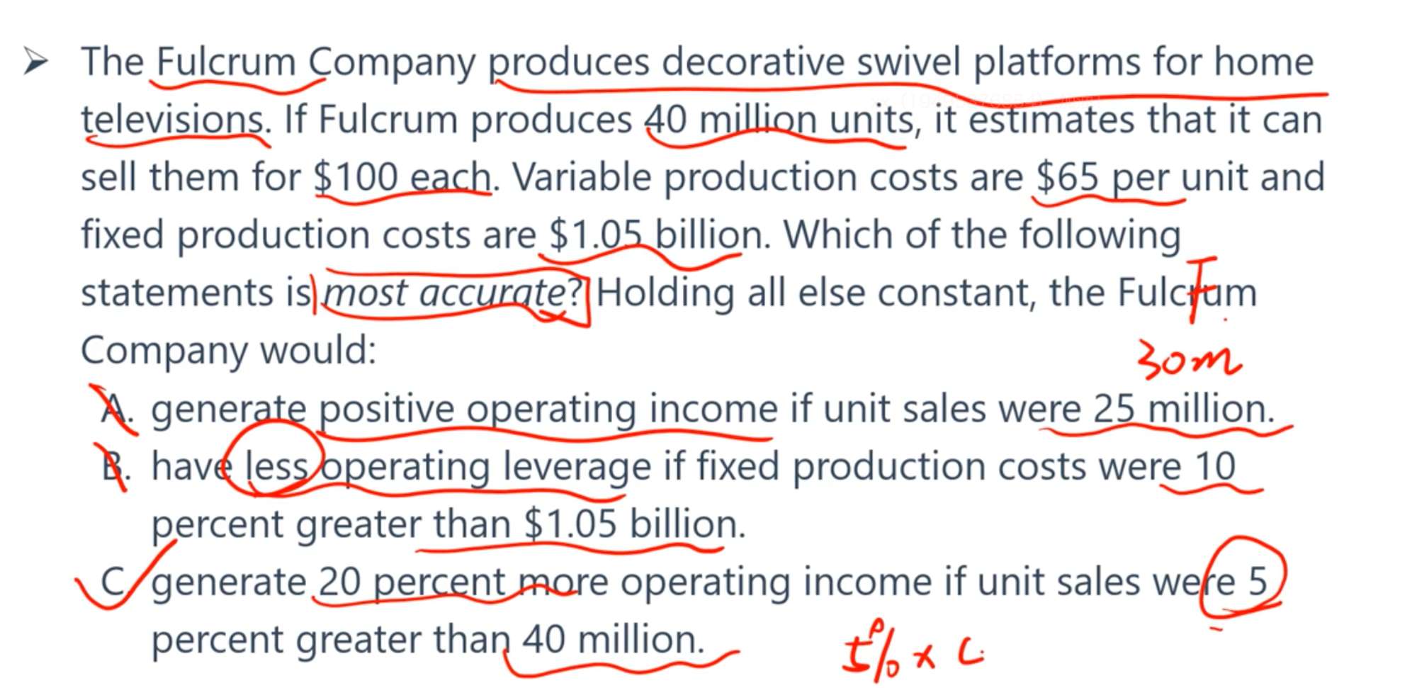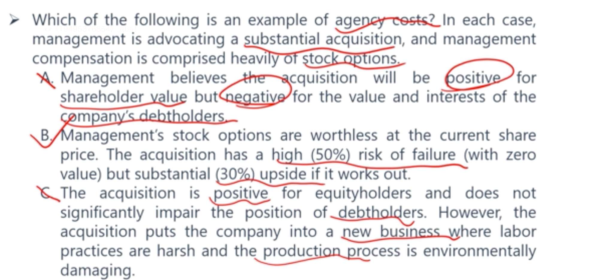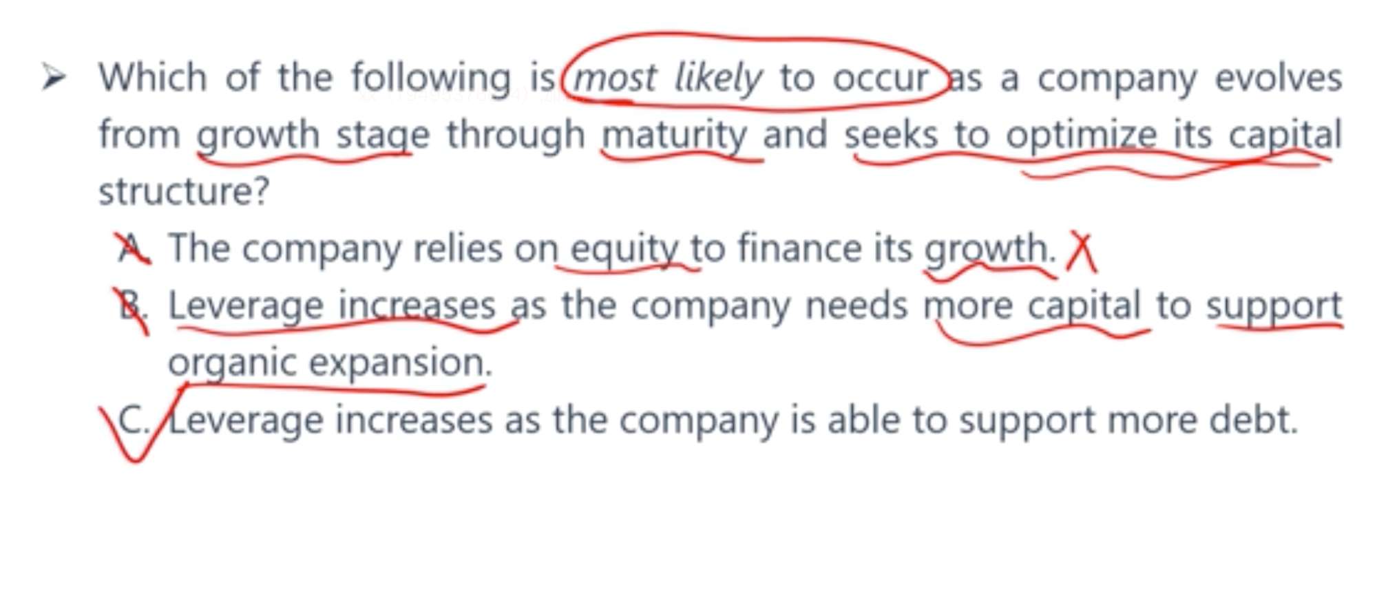 C增加杠杆的目的不就是B吗,即使是mature的公司也需要发展呀。另外C的话如果到了一定程度说不定就不一定非得因为承担得起而就要举杠杆,所以我最后在C和B中选了B