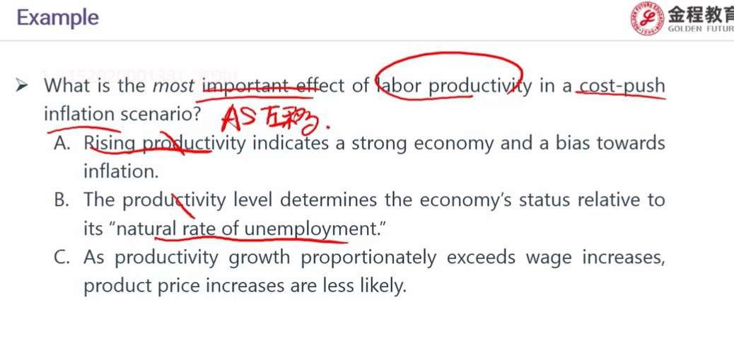 B选项,生产率可以决定产出水平,潜在的产出水平就是充分就业率,不就决定了失业率吗?