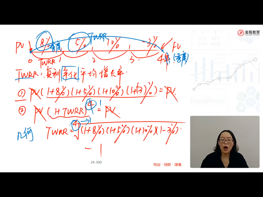 时间是季度时,为什么不是(1+TWRR/4)的四次方✖️PV=FV呢