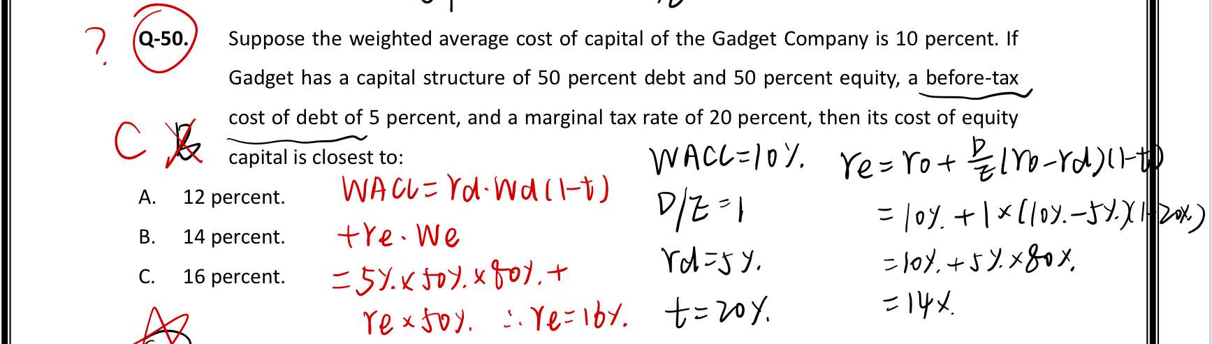 公司理财 百题 Q50 请问为什么这种计算方法算出来结果是错误的?