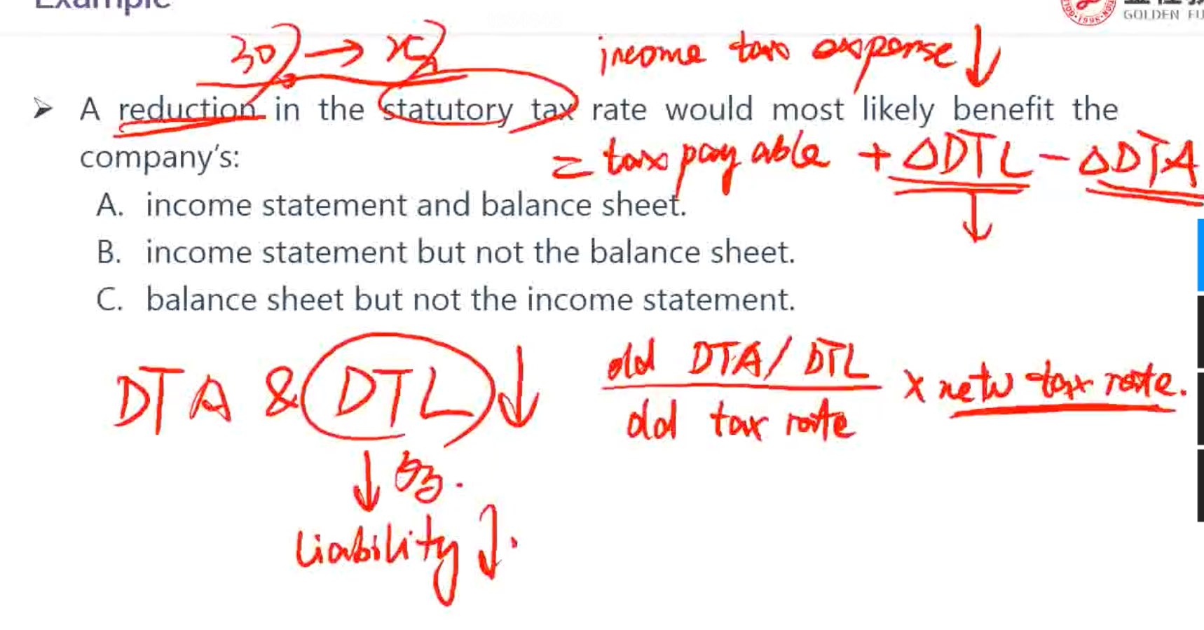 为什么DTL的下降更多呢?+DTL的变化量,从39040下降到32639。net DTA的变化是15557到17606,变化的更少一些。这么看DTL的下降更多。如果税率下降,是如何知道DTL的下降更多呢?