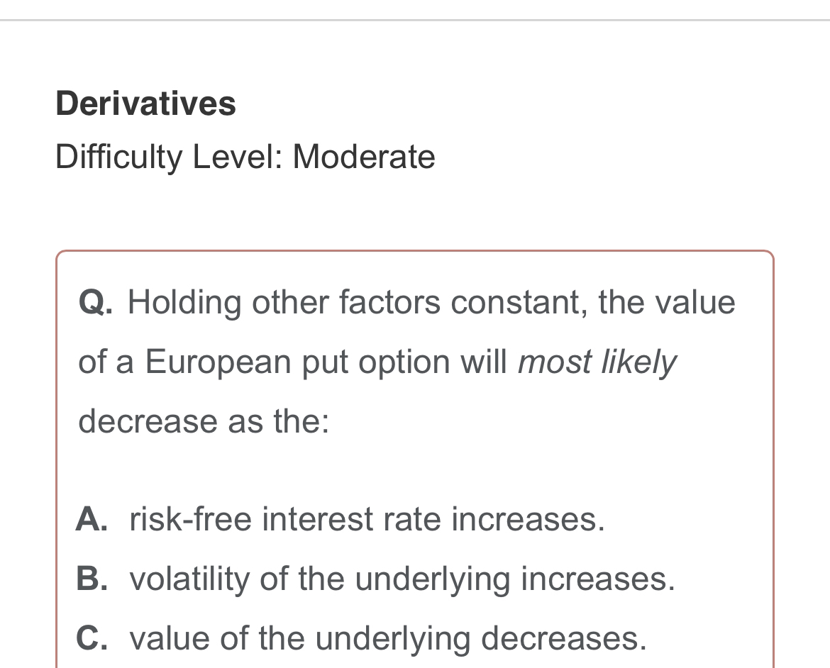 老师,Rf增加的话价格降低,那看跌期权的value不是价格越低value越高么……有点混乱学得…
