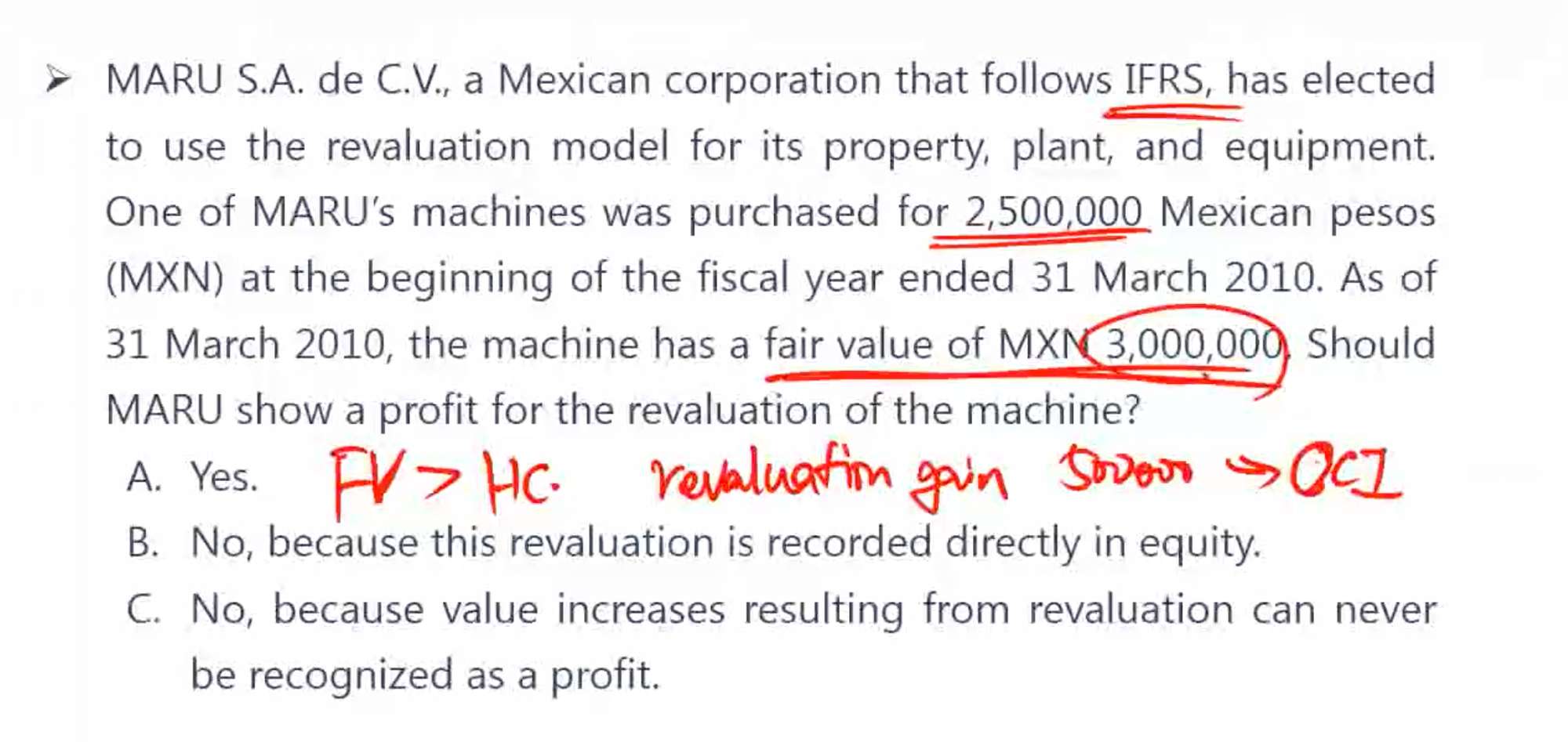 C为啥不对?B说记录到equity的就都不是profit?