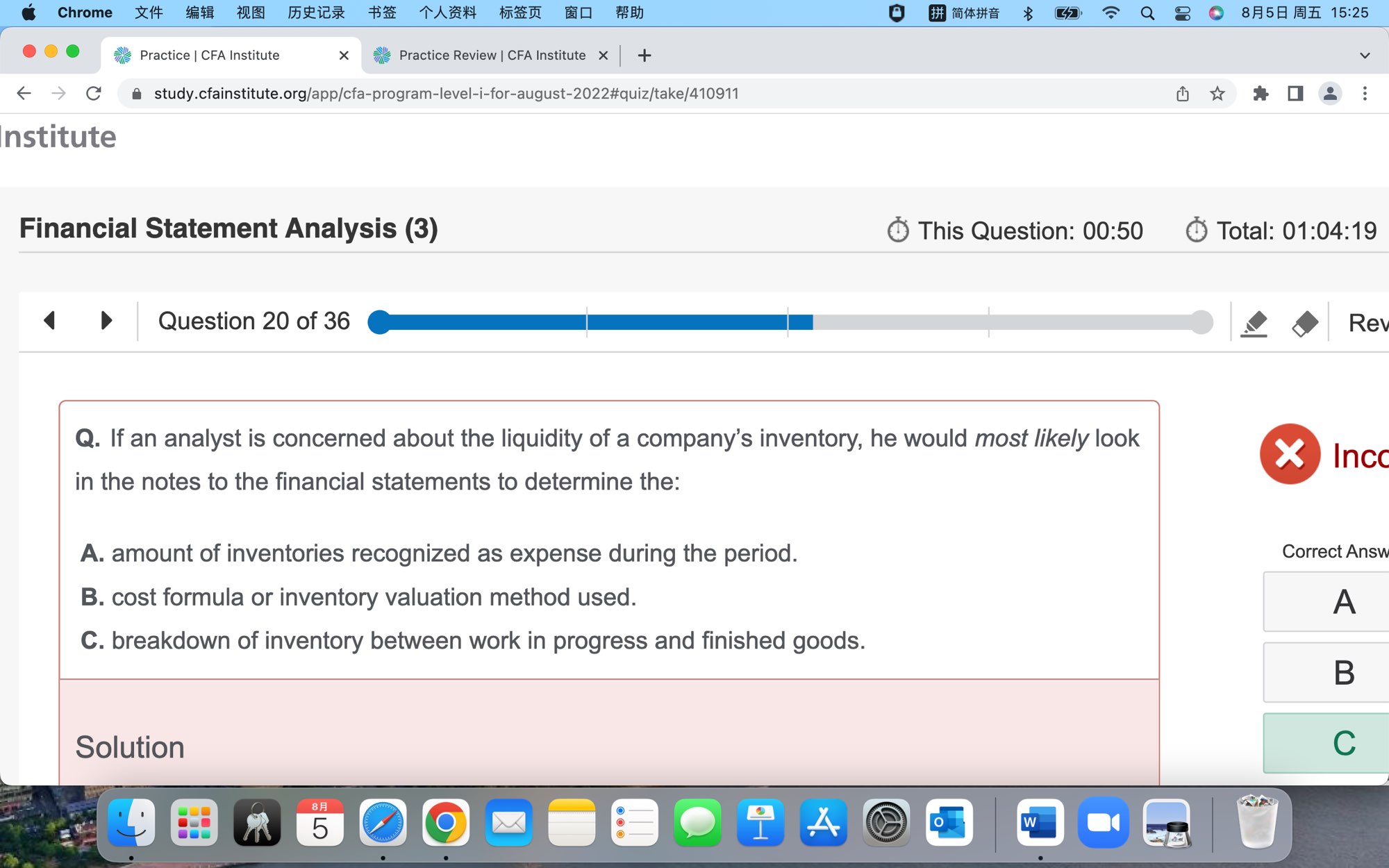 老师好,这道题为什么不能选a呀?inventory转成cogs不就意味着inventory被卖出去了几次吗,相当于就是inventory turnover ratio,不可以衡量inventory流动性的吗?