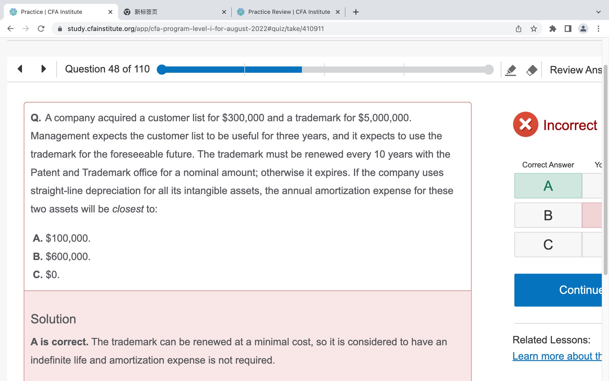 老师 可以帮忙解释一下为什么即使renew这个trademark也不需要进行amortization呢?10年不是trademark的使用期限吗,题目里不是说如果不renew就会过期,不就意味着trademark的使用期限是10年?