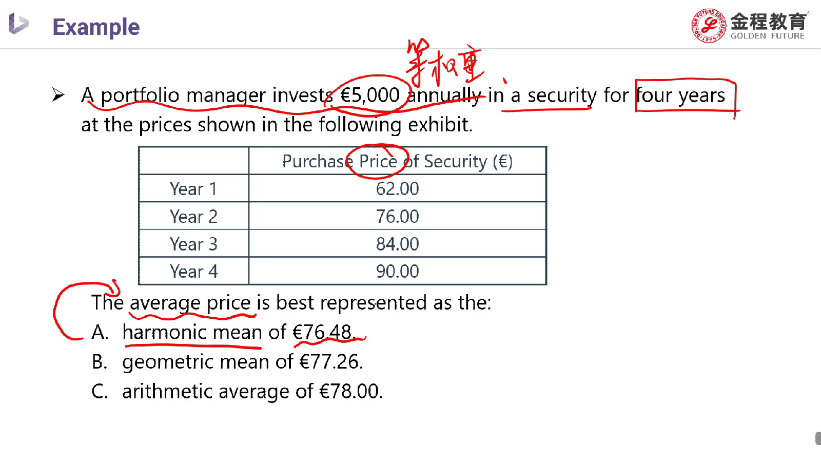 老师,这里(62+76+84+90)/4=78,C选项是哪里错了?