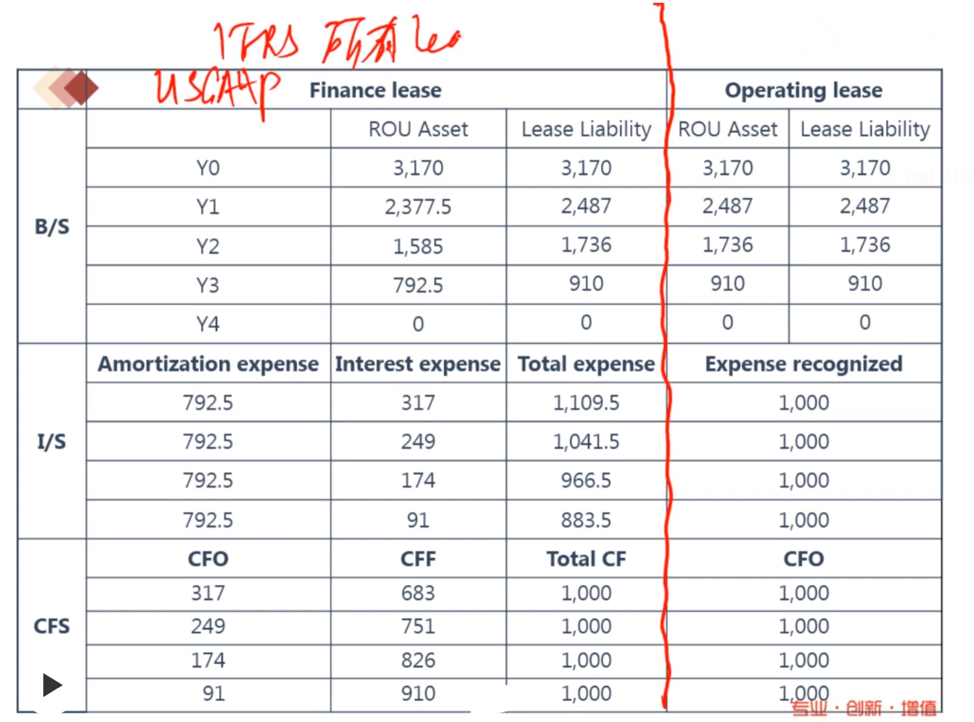 对于融资租赁,ROU资产和租赁负债在资产负债表中确认,但租金费用不在其损益表中确认。