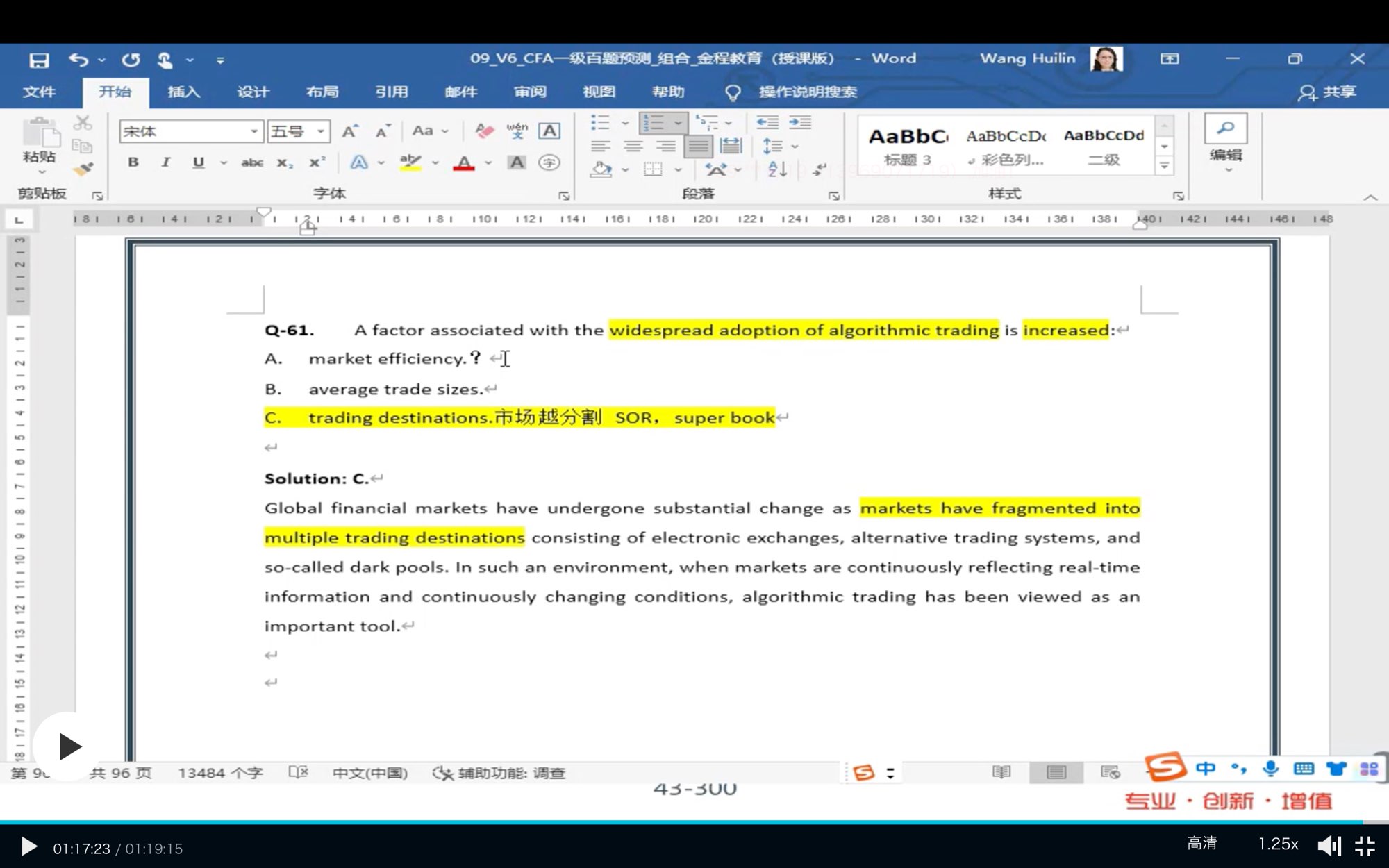这个题为什么不能选a呀?算法交易的其中一个优点不就是high frenquency trading吗?交易速度变快了市场流动性越高市场的marketefficienvy不就会越高吗?