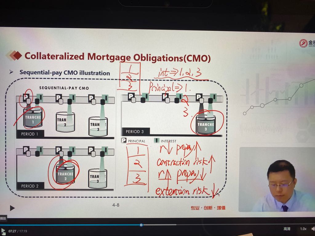 林老师讲CMO顺序支付时说,利率上升,提前还款下降,对A来说延展风险降低,似乎不妥,应该是无论对于A还是B、C,都是延展风险上升,只不过,A相对C上升较小,也就是利率上升,C延展风险最大。对吗?
