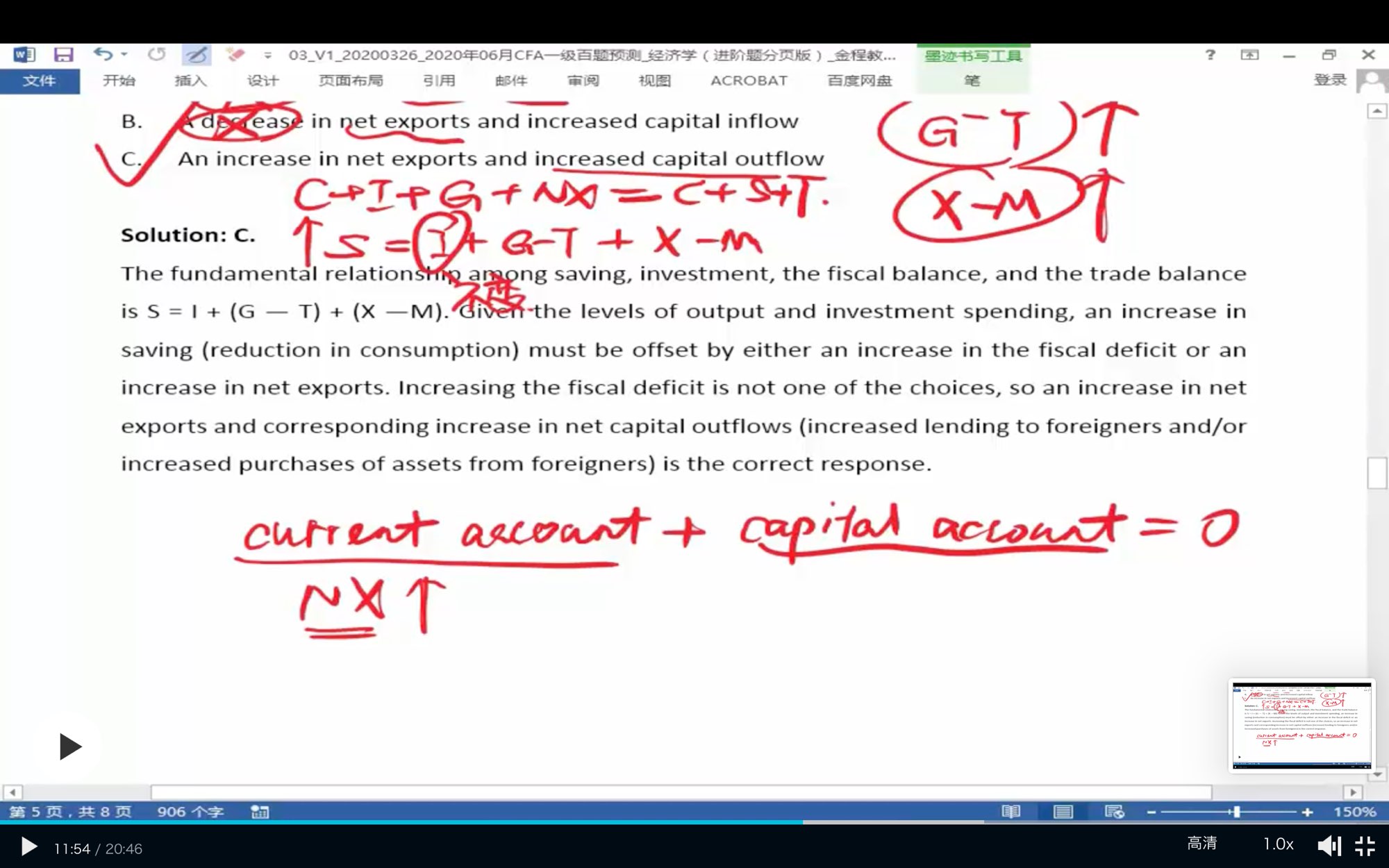 老师请问下为什么current account + capital account = 0? 课上没提到过这个公式啊