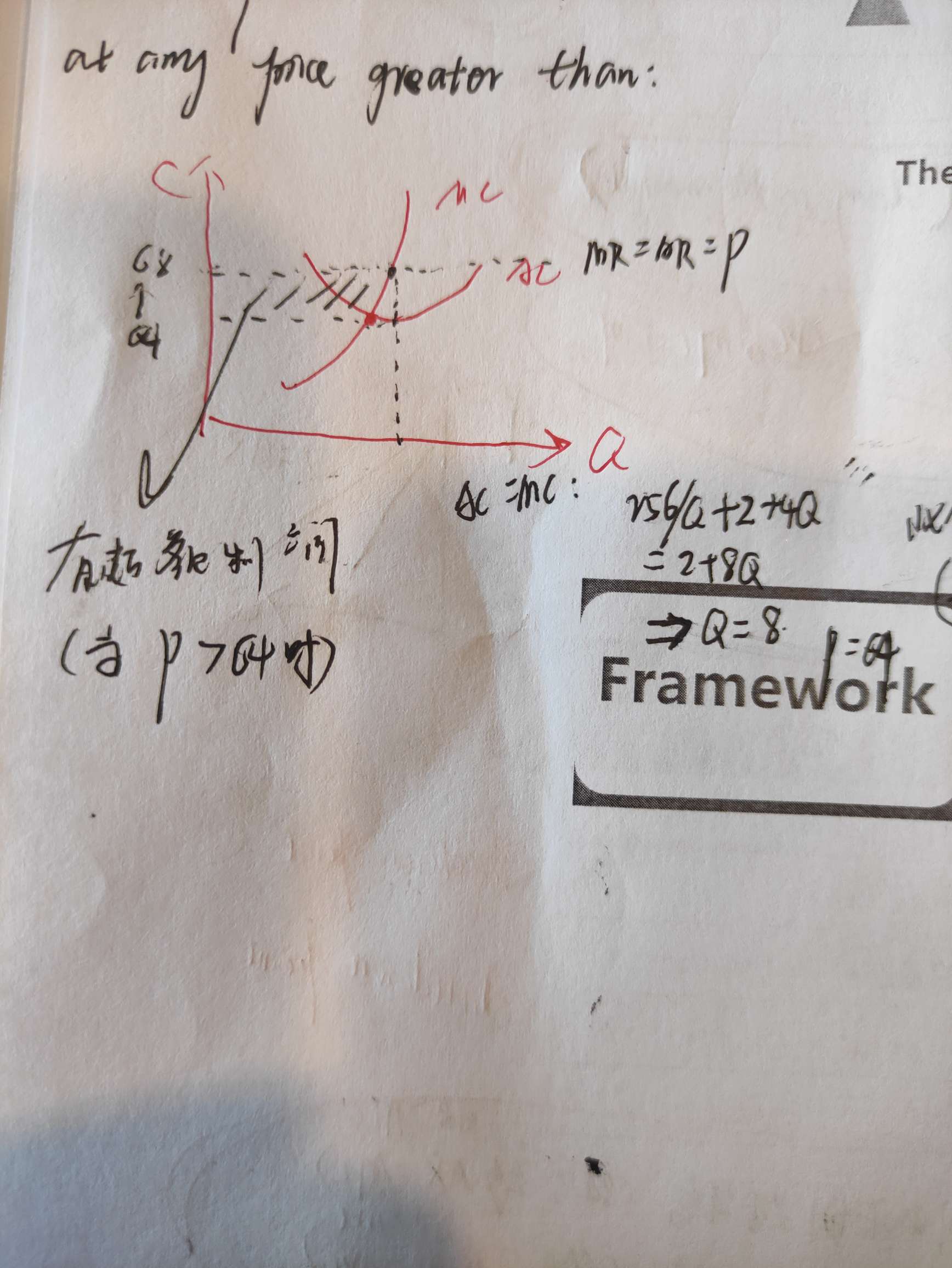 我这样理解对吗?对单个厂商来说,当价格正好定在MC与AC交点的时候,不会获得超额利润。新进来的厂商一进来的时候,MC与AC本来有个交点,但是市场此时的价格定在了此交点之上,导致此新厂商在生产的时候MC (=MR=P)大于AC,相减产生了超额利润。图中阴影的面积就是超额利润。对吗?
